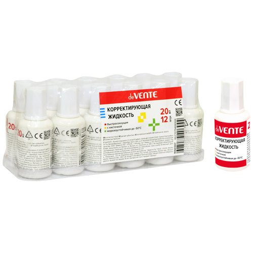 Корректирующая жидкость " deVente " 20мл с кисточкой ,быстросохнущая, морозоустойчивая, картонный дисплей