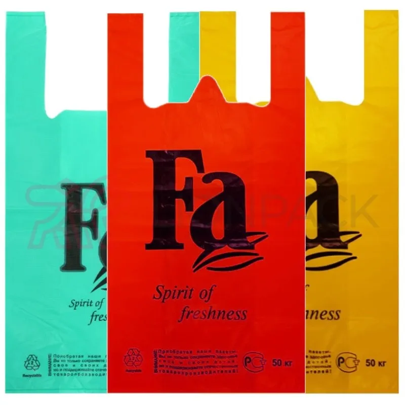Пакет майка ПНД 30см+14см*55см 25мк Fa цветной