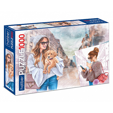 Пазлы " Hatber " 1000элементов Premium Девушка с собачкой 68*48см, картонная упаковка