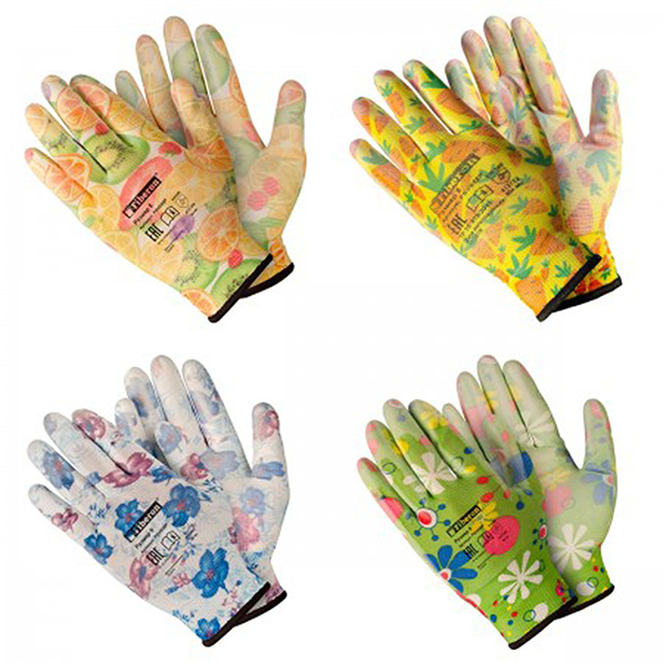 Перчатки полиэстеровые для садовых работ, разноцветные, полиэстеровые, полиуретановое покрытие, микс цветов (без возможности выбора цвета и дизайна)