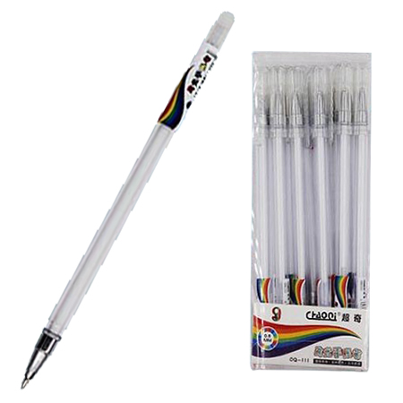 Ручка гелевая " Basir " белая 0,6мм, толщина письма 0,3мм, металлизированный наконечник, прозрачный корпус, пластиковая упаковка