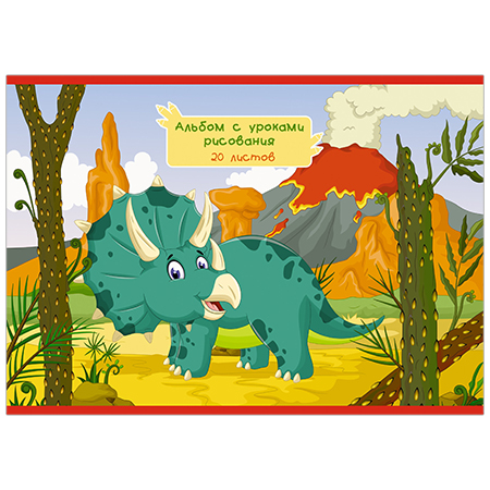 Альбом А4 20л " Эксмо " Динозаврик, на скобе, обложка - мелованный картон, твин-лак, блок- офсет 110г/м2, оборот обложки - уроки рисования