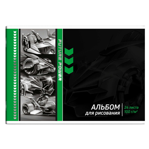 Альбом А4 24л " Феникс " Футуристичные тачки, на скобе, обложка- матовый ламинированный картон, тиснение фольгой, блок- офсет 100г/м2