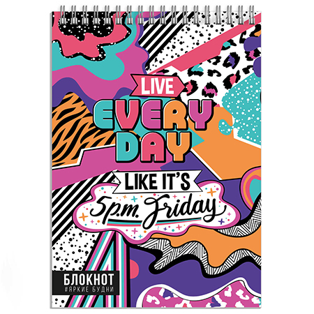 Блокнот А5 спираль сверху 60л " Феникс " Пятничное настроение, клетка, обложка - мелованный картон, УФ-лак, белый офсет, 140*220мм