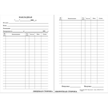 Бланк " Накладная А5 " 100л двухсторонняя офсет