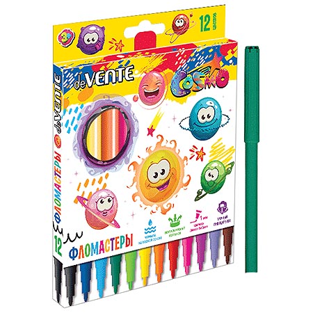Фломастеры " deVente " Cosmo 12цв круглые, вентилируемый колпачёк, картонная упаковка, европодвес