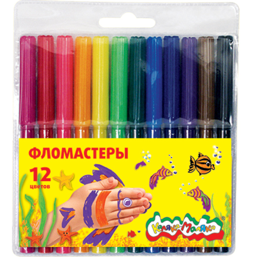Фломастеры " Каляка-Маляка " 12цв смываемые, на водной основе, круглые, вентилируемый колпачок, ПВХ упаковка, европодвес