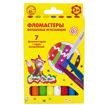 Фломастеры " Каляка-Маляка " 7цв + поглотитель, смываемые, утолщеные, круглые, на водной основе, вентилируемый колпачок, картонная упаковка, европодвес