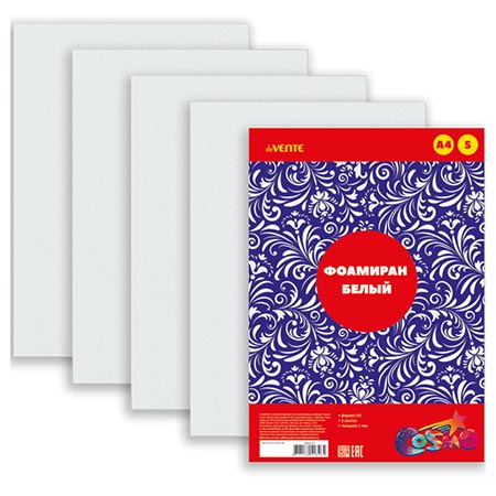 Фоамиран " deVente " А4 5л 1цв 1мм белый, пластиковый пакет, европодвес