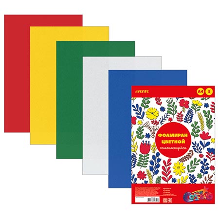 Фоамиран " deVente " А4 5л 5цв 1мм самоклеящийся, пластиковый пакет, европодвес