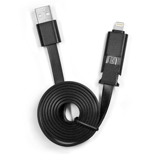 Кабель сетевой USB - Lightning, micro USB " Mirex " AM8MC чёрный, плоский, 1м, 1,0А, ПВХ