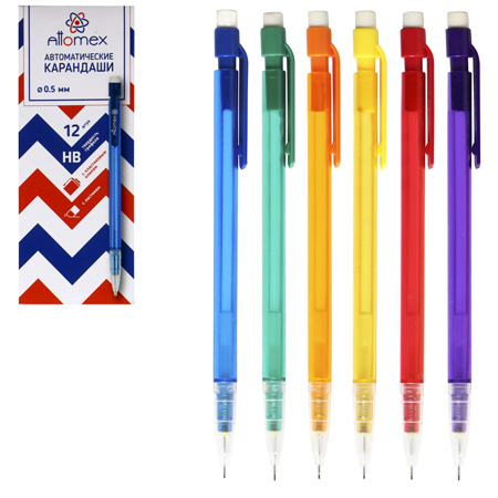 Карандаш механический " Attomex " 0,5мм, HB, ластик, пластиковый, пластиковый клип, картонная упаковка