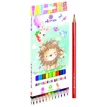 Карандаши цветные деревянные Zoo 12цв " Attomex " шестигранные, картонная упаковка, европодвес