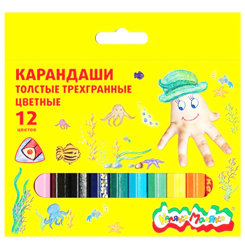 Карандаши цветные деревянные мини утолщенные Джамбо 12цв " Каляка-Маляка " 4М трехгранные, картонная упаковка, европодвес