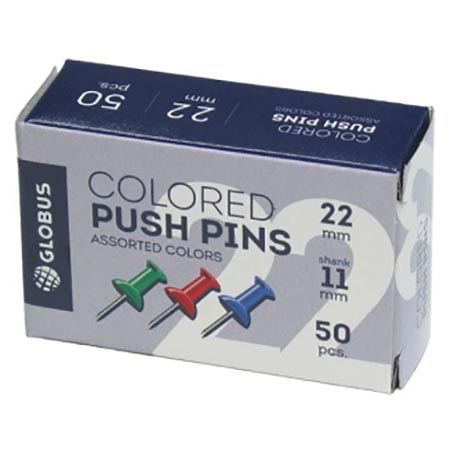 Кнопки-гвоздики " Глобус " 11мм 50шт силовые, цветные, картонная упаковка