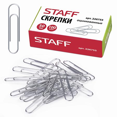Скрепки 50мм 100шт оцинкованные, картонная упаковка