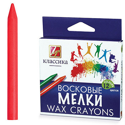 Мелки восковые " Луч " Классика 12цв, круглые с заточкой, в картонной коробке с европодвесом
