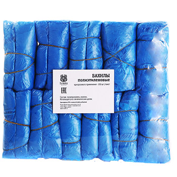 Бахилы 100 штук (50 пар) в упаковке, усиленные, размер 40*15см, 3,2г, голубые