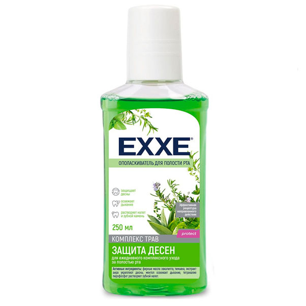 Ополаскиватель для рта " Exxe " 250мл, Защита десен, зеленый