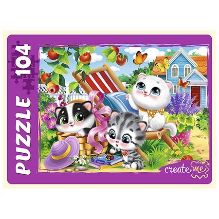 Пазлы " Рыжий кот " 104элемента Смешные котята №2 34*24см, картонная упаковка 19*14*3,5см