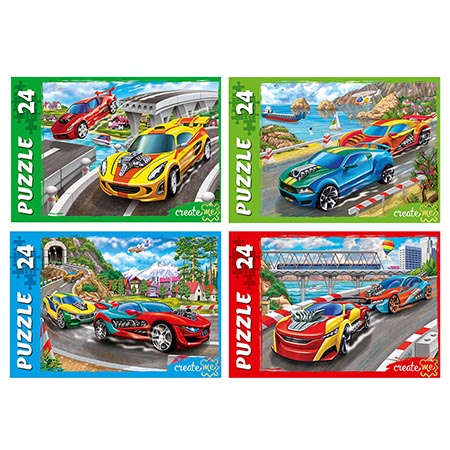 Пазлы " Рыжий кот " 24элемента Мегагонки 2,5*6,5* 9см, 4 дизайна, картонная упаковка 46,5*39*28см