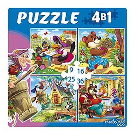 Пазлы " Рыжий кот " 4в1 Лучшие русские сказки (9,16,25,36) элементов 17,5*17,5см, картонная упаковка