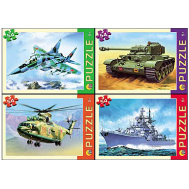 Пазлы " Рыжий кот " 54элемента Транспорт 17,5*13,0см, 4 дизайна, картонная упаковка 9*6,5*2,5см