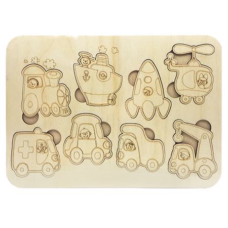 Пазлы деревянные " Задира " 8элементов Транспорт, фанера, 25*18см, термоусадочная пленка