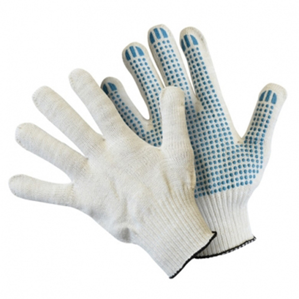 Перчатки хлопчатобумажные 4 нити ПВХ точка, 32гр, 10класс