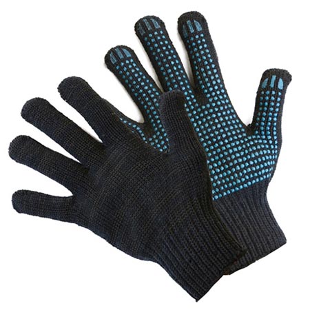Перчатки хлопчатобумажные ПВХ точка, черная пряжа, 75гр