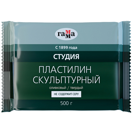 Пластилин " Гамма " скульптурный Студия 500г оливковый, твердый, индивидуальная упаковка