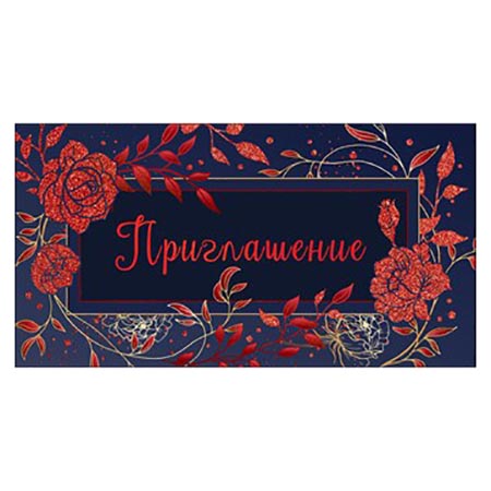 Приглашение " Праздник " 150 Розы, 126х64мм, блёстки, текст