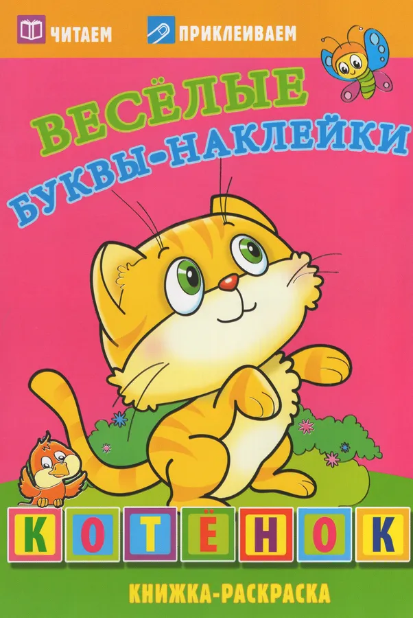 Веселые буквы-наклейки. Книжки с наклейками "Котенок"