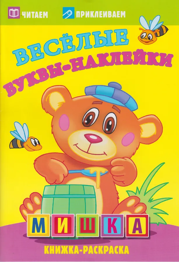 Веселые буквы-наклейки. Книжки с наклейками "Мишка"