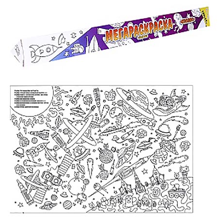 Раскраска " Проф-Пресс " 690*1000мм Космос, в рулоне, офсет, односторонняя печать, треугольная картонная упаковка 70*6,5см