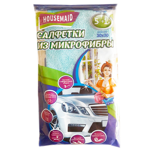 Салфетки микрофибра " Housemaid " 30*30см 6шт, индивидуальная упаковка