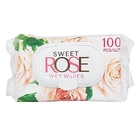 Салфетки влажные 100шт " Sweet Rose " клапан, пластиковая крышка