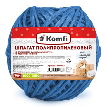 Шпагат " Komfi " полипропиленовый 1,6мм*50м, 1000текс, синий, клубок