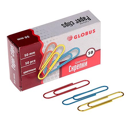 Скрепки " Глобус " 50мм цветные 50шт, картонная упаковка
