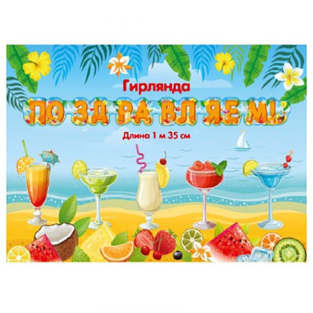 Гирлянда " Миленд " Поздравляем! Коктейли, 1м 35см