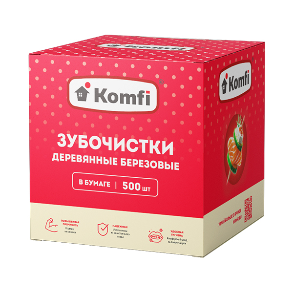 Зубочистки " Komfi " березовые 500шт, картонная упаковка